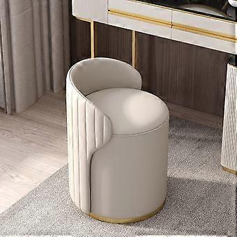 Leather Upholstered Vanity Chair with Grey Wooden Frame, Elegant Makeup Stool for Small Spaces