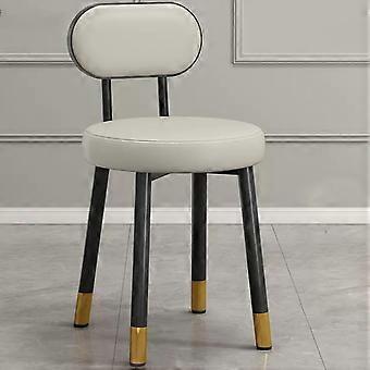 Moderne sminkestol med ryglæn, grå PU-polstret makeupskammel, guldmetalben til soveværelse