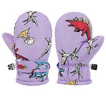 AWZXDE Toddler Winter Ski Mittens Cartoon Design Kids Baby Gloves For Outdoor Activities Purple