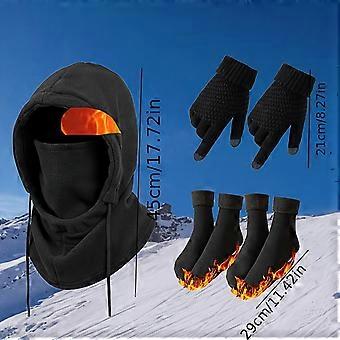 Men's Cycling Daily Warm Winter Fleece Lined Beanie Hat Integrated Multi-Functional Hood, Warm Gloves, Cotton Socks Set B