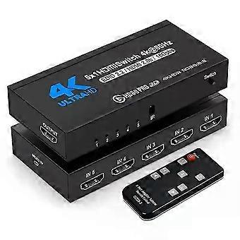 5-in, 1-out 4K HDR HDMI 2.0 switcher, 5x1 5-port 4K 60Hz HDMI switcher, supports HDCP 2.2 and HDR10, includes infrared remote control, suitable for PS