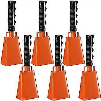 Cowbells 6 Pack Orange Metal with Handle for Sporting Events Graduation Parades Clear Sound