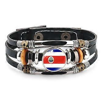 Læderarmbånd med landeflag, flerlags sort kohuddesign, 7,87 tommer
