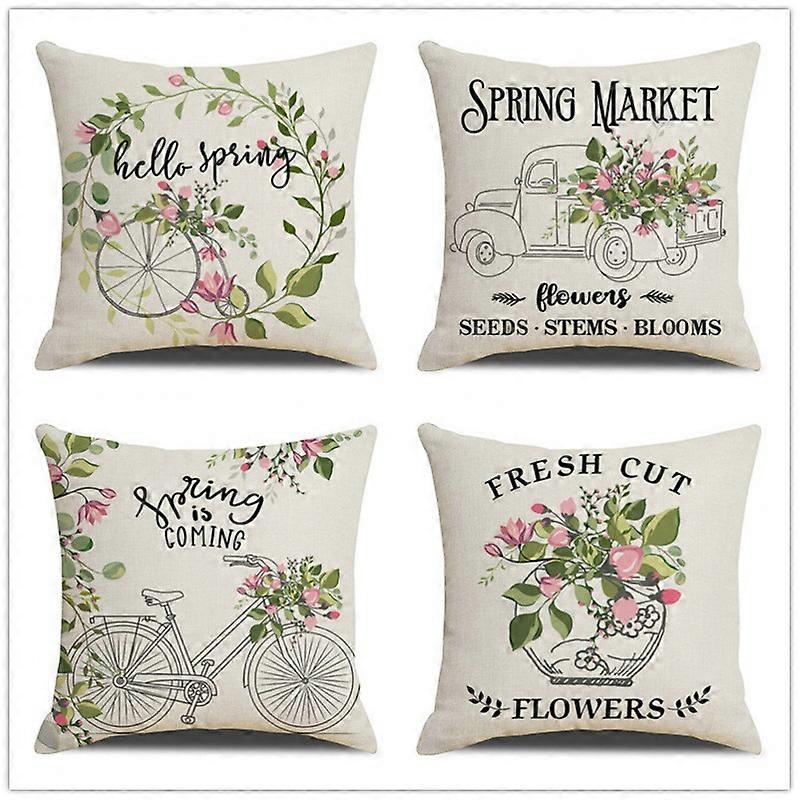 Set of 4 Spring Cushion Covers,Spring Flowers Green One Sided Decorative Cushion45 x 45 cm
