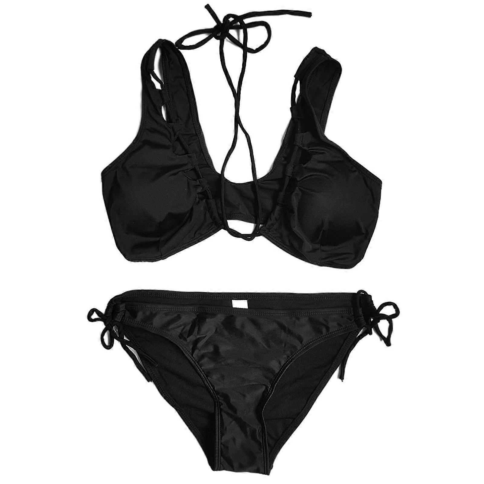 Sexy Women's Swimsuit Black Hollow Tie Bikin 2-piece Summer Bathing Suit