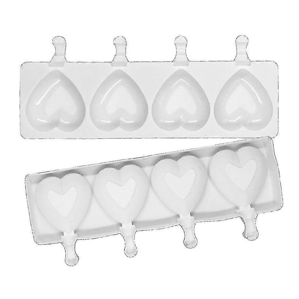 Silicone Ice Cream Mould 4 Hole Heart Shape Popsicle Mould Freezer Ice Cream Maker2 PiecesWhite