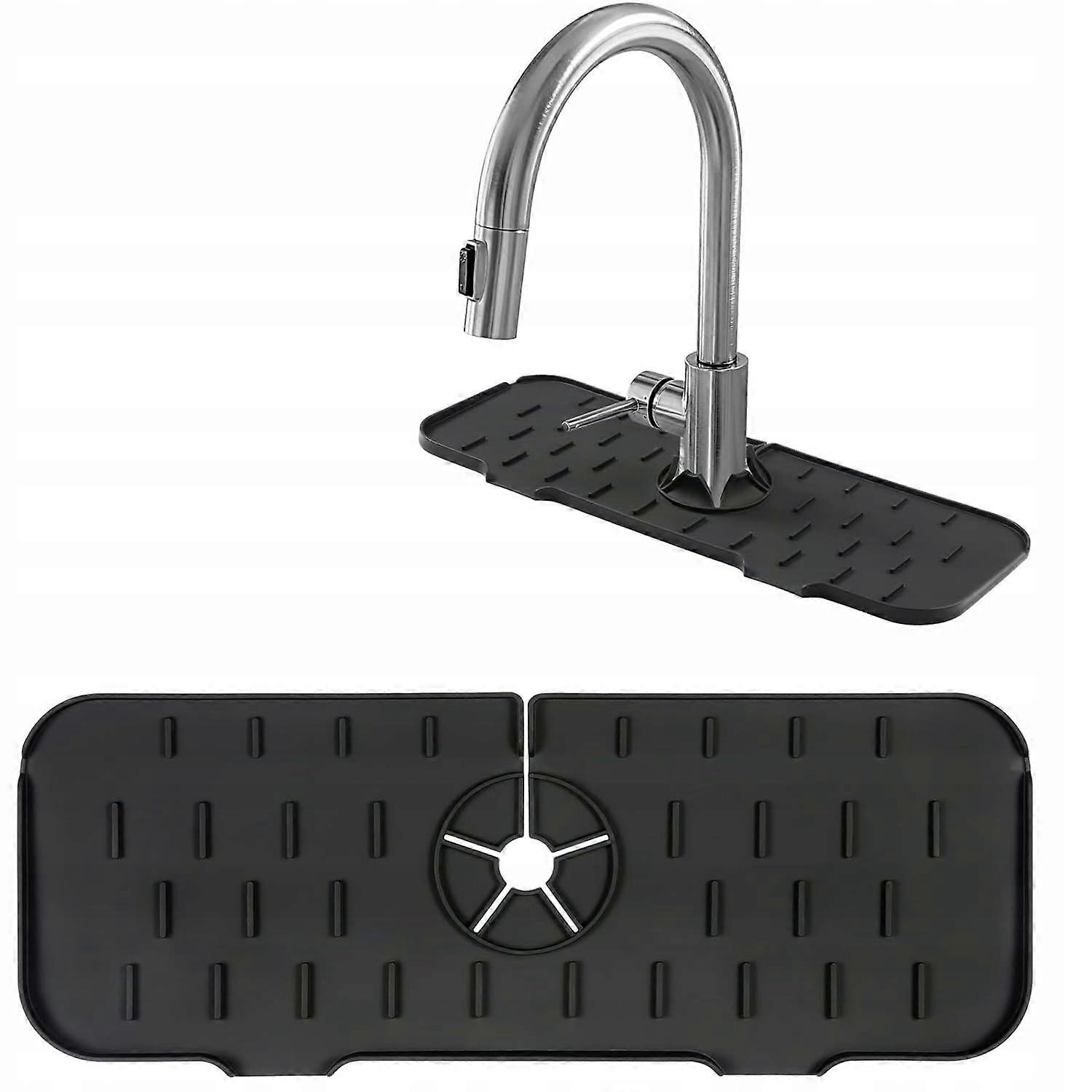 Silicone Sink Mat Drip Tray Under The Kitchen Sink Tap, Black