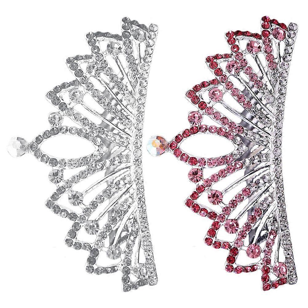 Gorgeous Tiara Comb Birthday Decorations For Girls Parties Crown Accessories 2Pcs Fabricated With Durable Materials