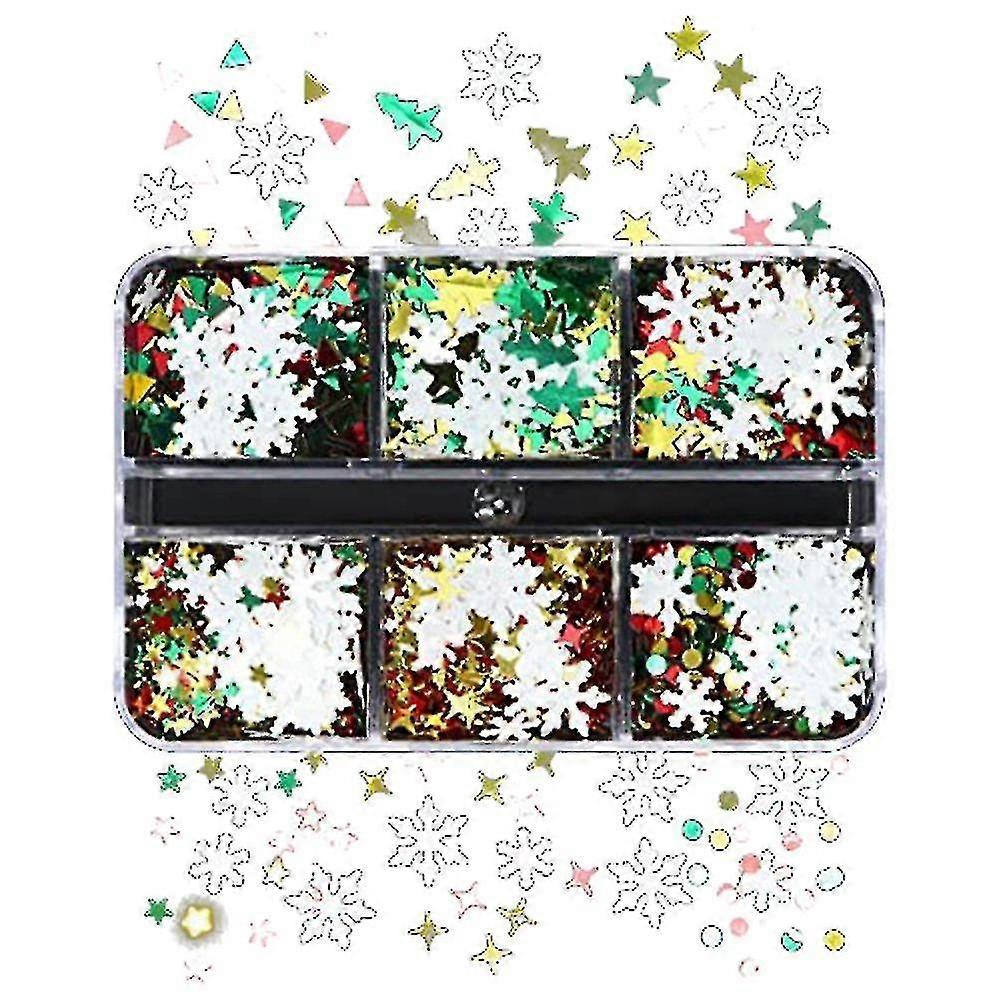 Snowflake Nail Glitter Sequins 6 Grids 3d Holographic Shiny Snowflake Winter Christmas Nail Decorat