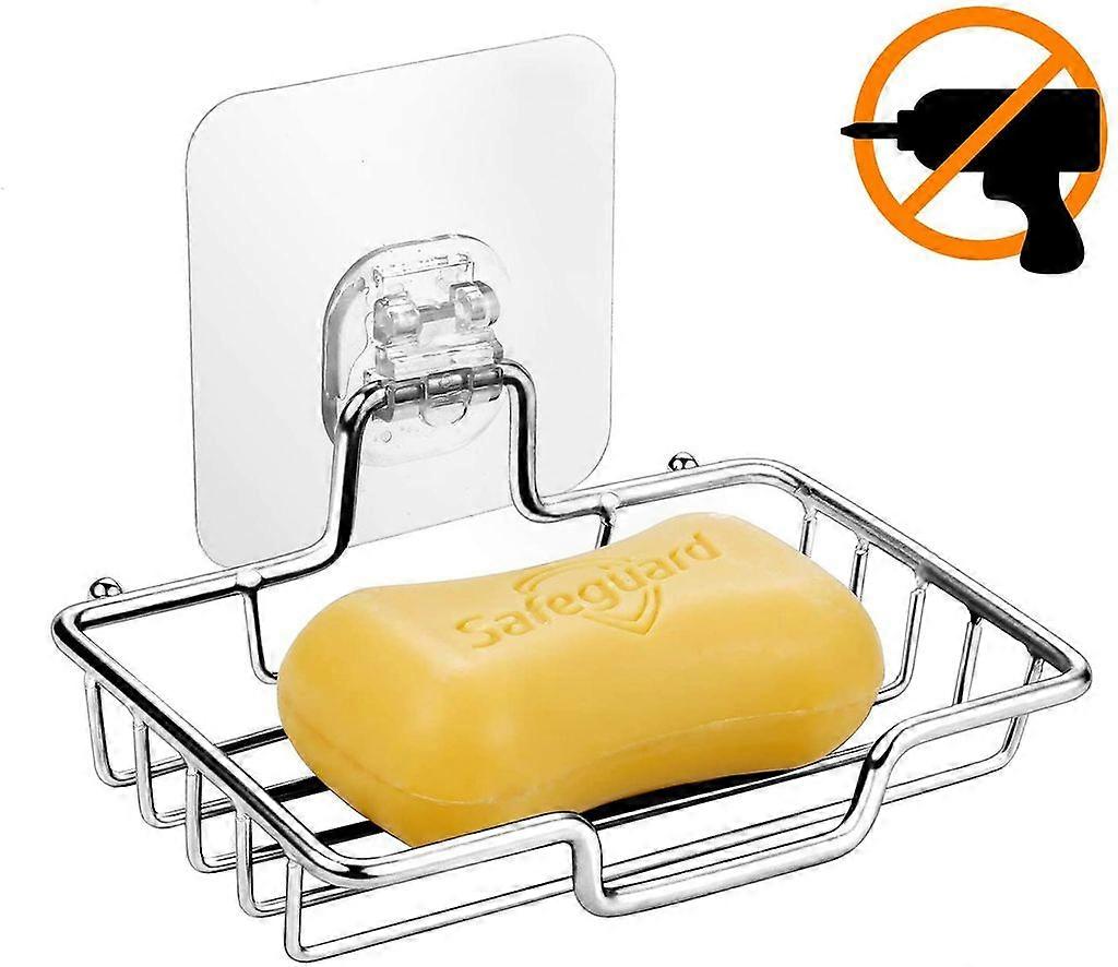 Soap dish for soap box, undrilled, transparent adhesive mat, stainless steel, polished surface