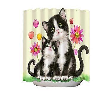Søde sorte og hvide katte mor og datter badeforhæng