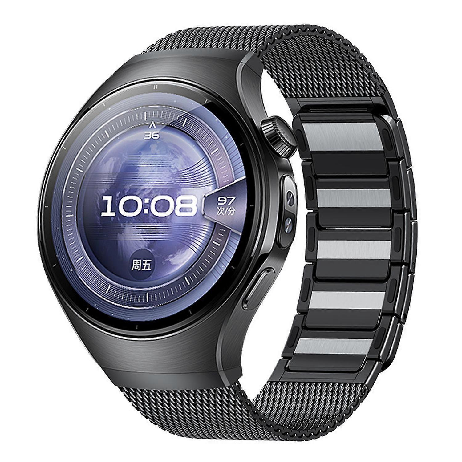 Seamless Press Button Magnetic Woven I-Shaped Stainless Steel Watch Band For Huawei Watch 5 46mm