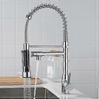Spring Pull Down Kitchen Sink Faucet 360 Degree Rotation Stream Sprayer Nozzle Kitchen Sink Hot Cold Taps Hot & Cold Water Mixer