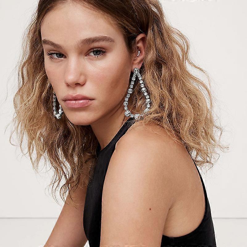 Large Gold Teardrop Rhinestone Earrings for Women