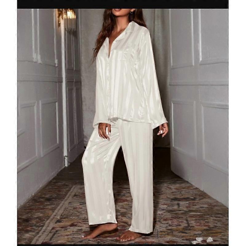 Women's Striped Pajama Set Solid French Silk Satin Pajamas Two Piece Set Comfortable Home Pajamas