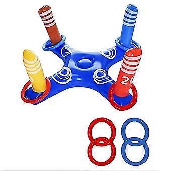SUMMERT Inflatable PVC Ring Toss Game Set Pool Toy Cross-Shaped Base with 4 Rings for Kids