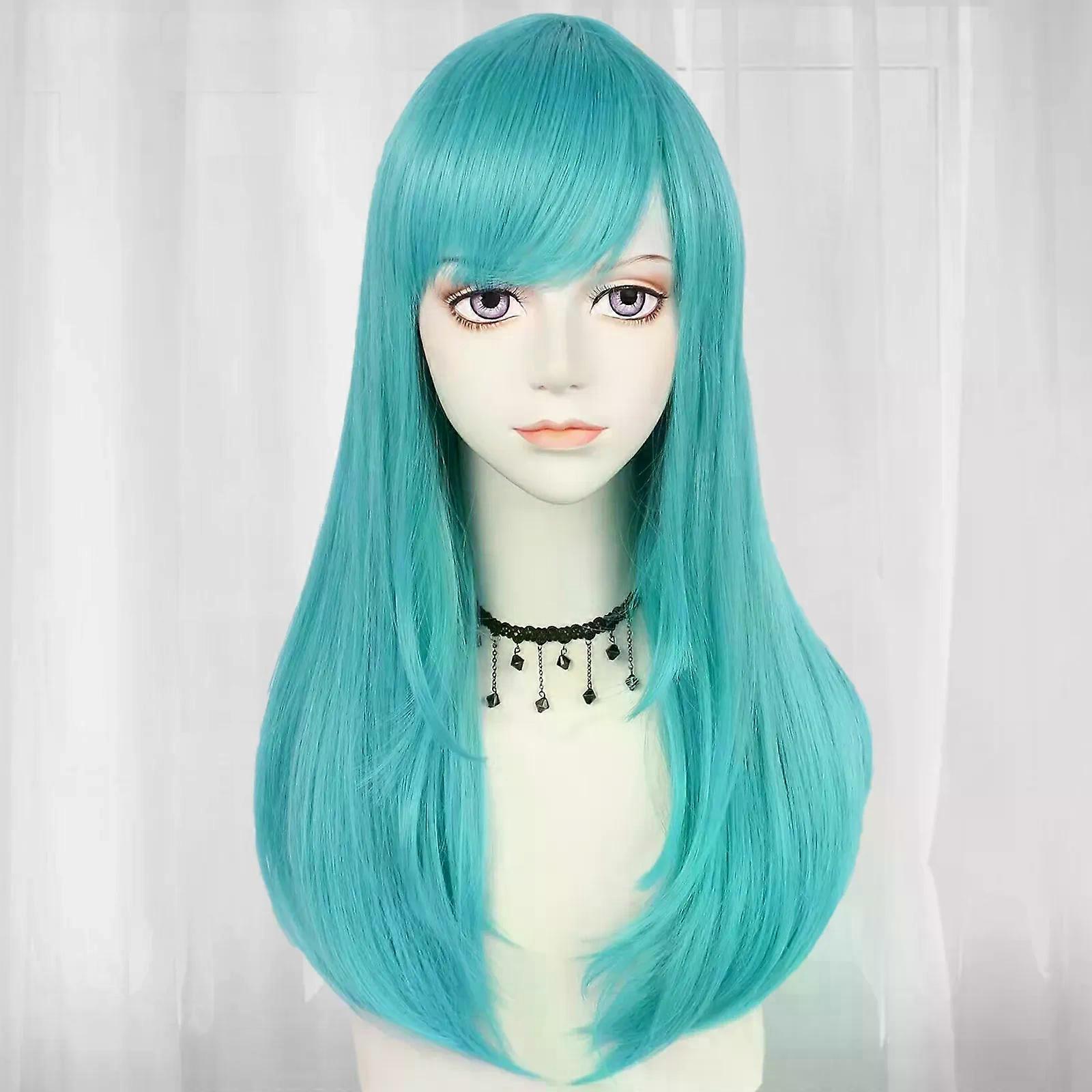 Synthetic Long Straight Blue Cosplay Wig For Women'S Parties Halloween Christmas School Thanksgiving Day