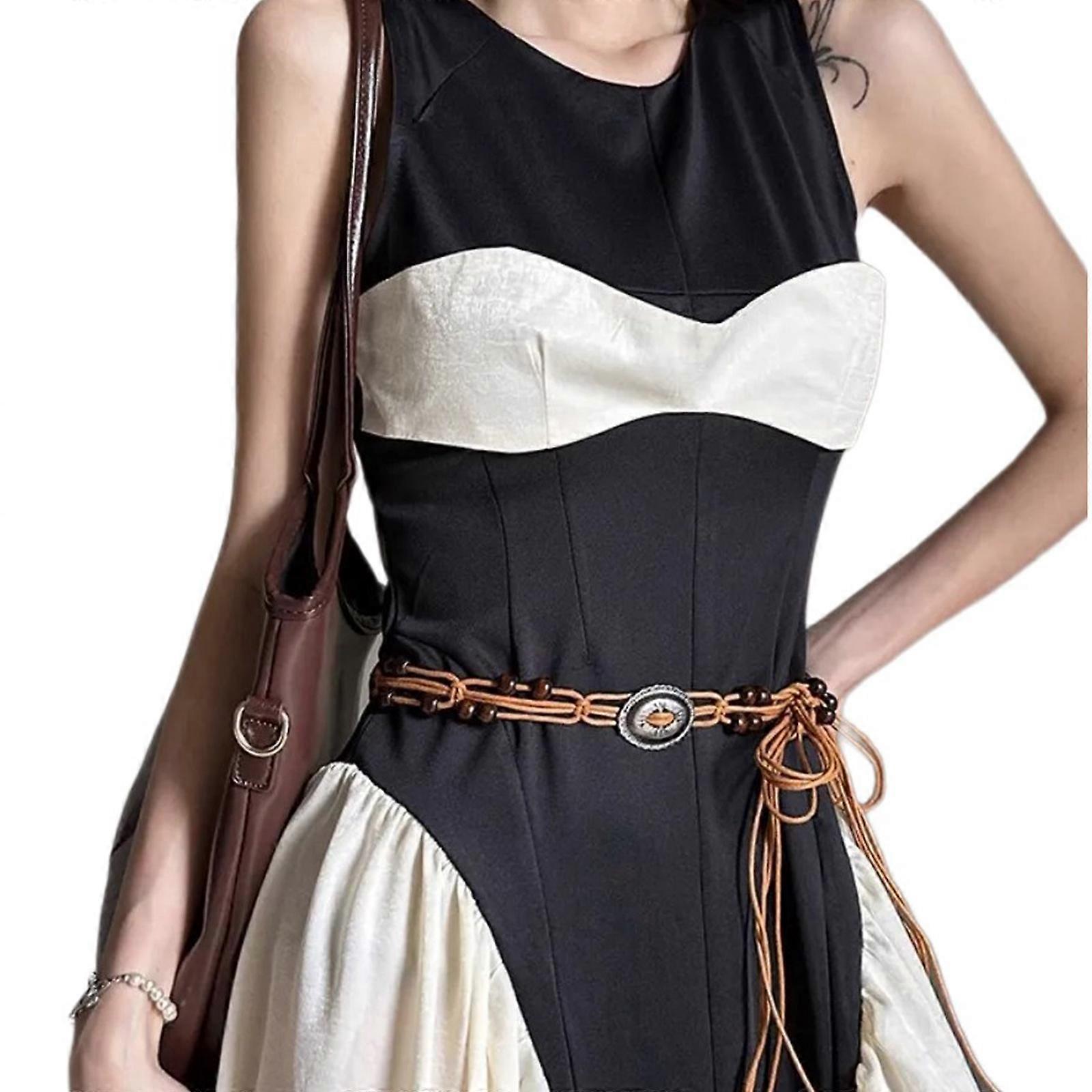 Waist Belt for Women Adjust LaceUp Waistband Ethnic Rope Belt for Girl Female Bohemian Style Vacation Belt brown