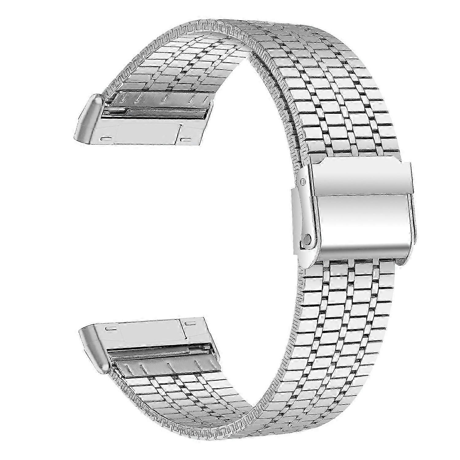 For Fitbit Versa 4/sense 2 Stainless Steel 7-beads Watch Band Dual Buckle Replacement Wrist Strap