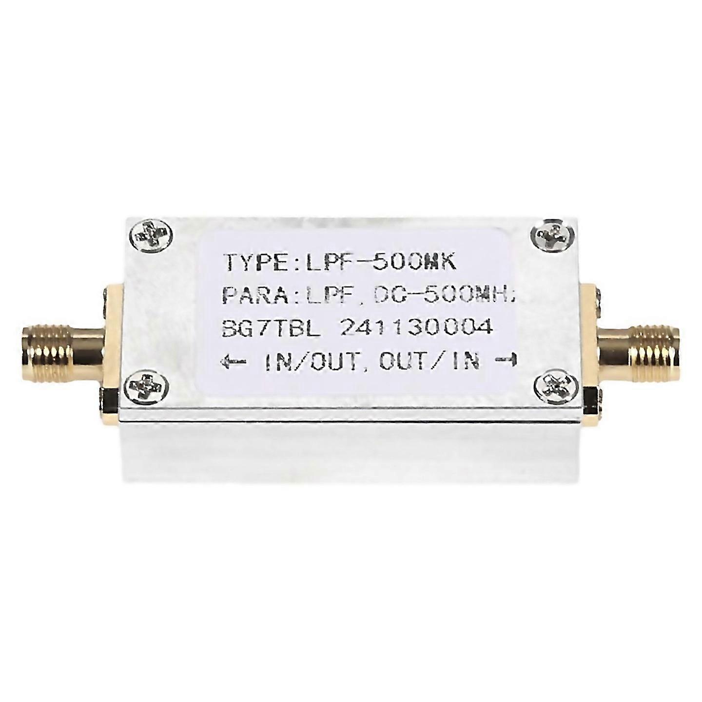 Fangrui Product Details [high-performance Low-pass Filter]: Designed For A Frequency Range Of Dc To 500mhz, The Lpf-500mk Ensures Precise Signal Filtering. [impressive Insertion Loss]: Boasts Minimal Insertion Loss Of 1.1db At 500mhz, With Steep Attenuation Of 60db At Both 1ghz And 1.5ghz, Providing Excellent Signal Clarity. [optimized Impedance Matching]:features 50 Input And Output Impedance, Compatible With A Wide Range Of Rf Systems For Seamless Integration. [durable Sma Connectors]: Equipped With Sma Connectors, Ensuring Reliable And Secure Connectivity. Different Batches May Have Different Appearance Label Printing, Which Will Not Affect The Use Colour:silver Material:aluminum Alloy Package Contents: 1 X Low-pass Filter Only The Above Package Content, Other Products Are Not Included. Note: Light Reflection And Different Displays May Cause The Color Of The Item In The Picture A Little Different From The Real Thing. The Measurement Allowed Error Is +/- 1-3cm.