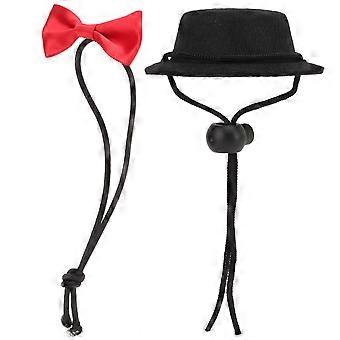 Hamster hat og butterfly sæt justerbar komfortabel lille kæledyr kjole op til kaniner hamstere marsvin (sort hat rød butterfly )