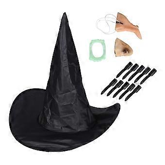 5stk heksetroldmandssæt Hat kæbe næse negle falske tænder til Halloween Play Cosplay kostume tilbehør