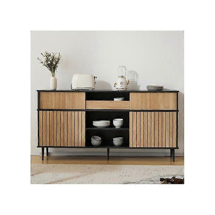 Commode - MUVOE - 4 sliding doors - Oak and black - 160 L x 40 D x 80 H - Contemporary