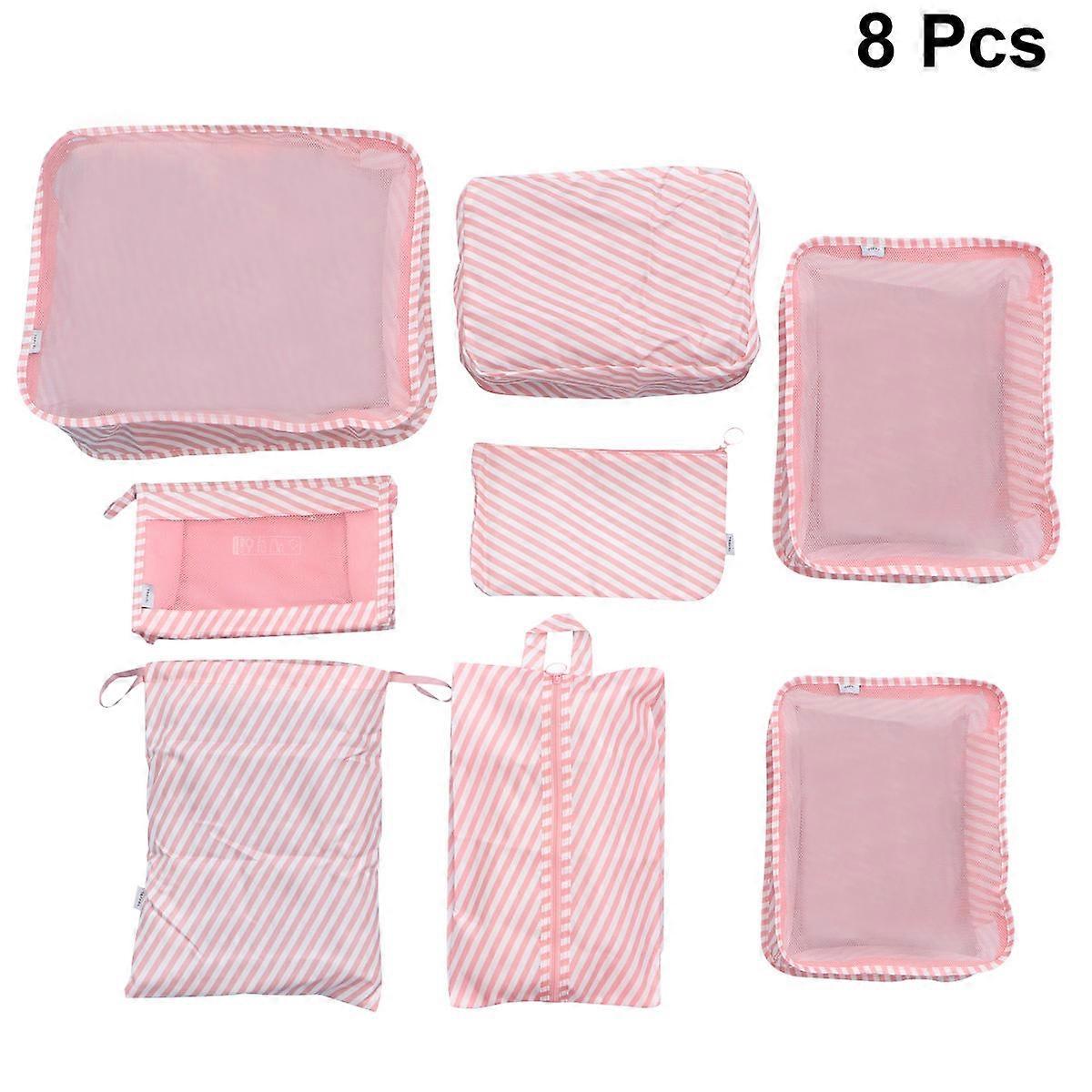 Clothing Bags Multi-Purpose Travel Clothes Bag Set Pink Stripe 8Pack for Suitcase Packing