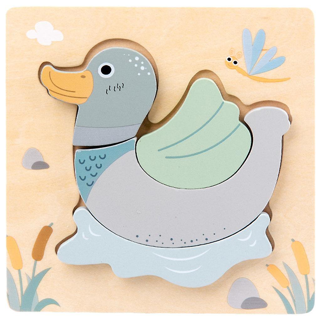 Wooden Animal Puzzle Building Block Jigsaw Educational Toys Pre-school Gift duckling