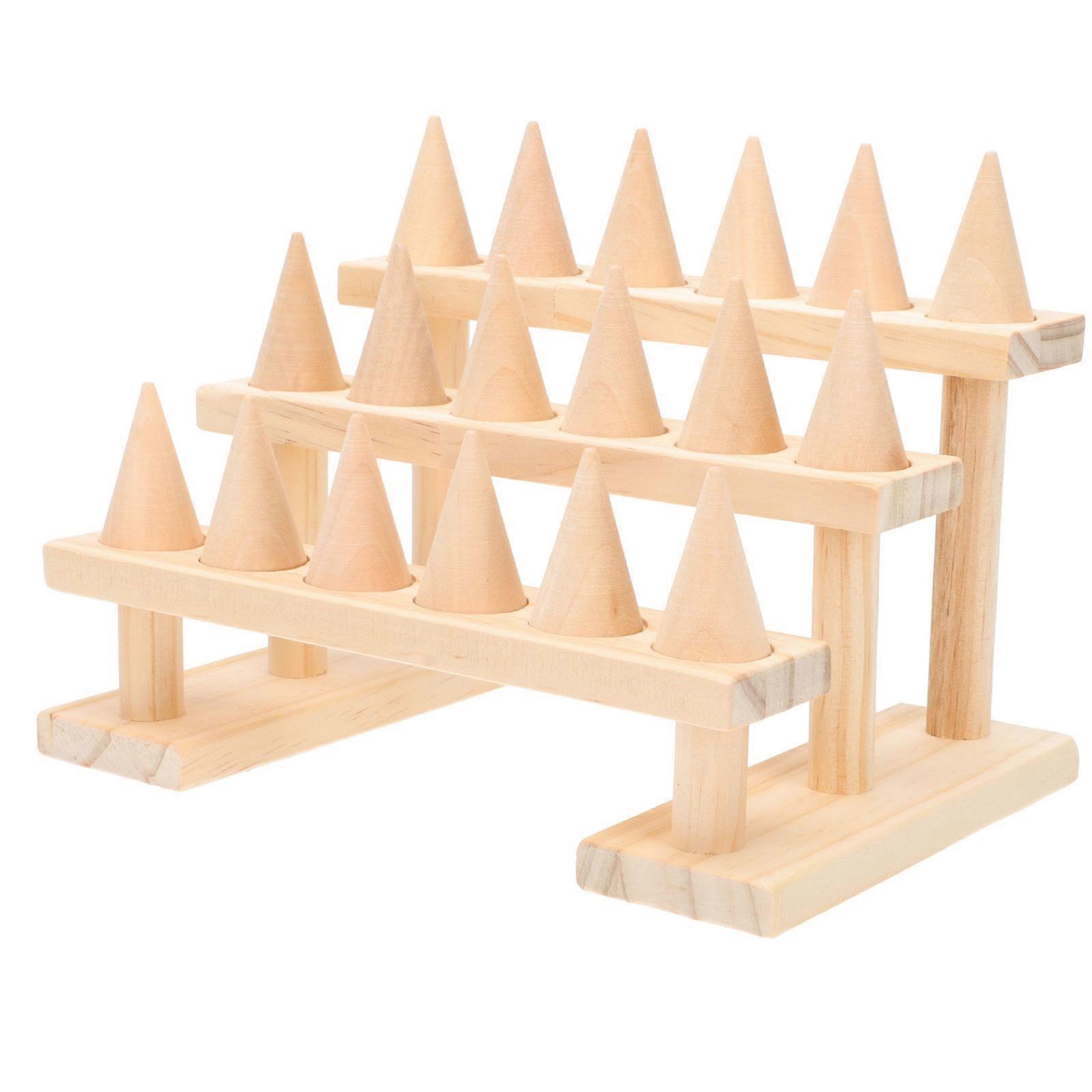 Wood Ring Display Rack for Jewelry Organizer 2Pcs Functional Set