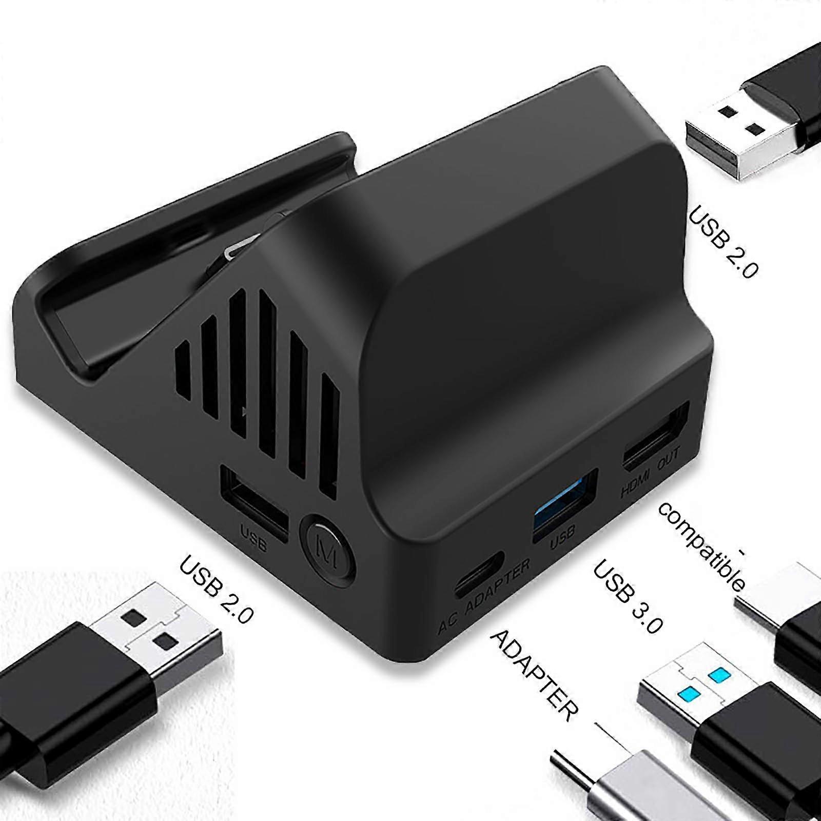 TV Dock Docking Station for Switch Model Travel Adapter Portable Charging Stand Built-in Cooling Fan High Speed Converte Black