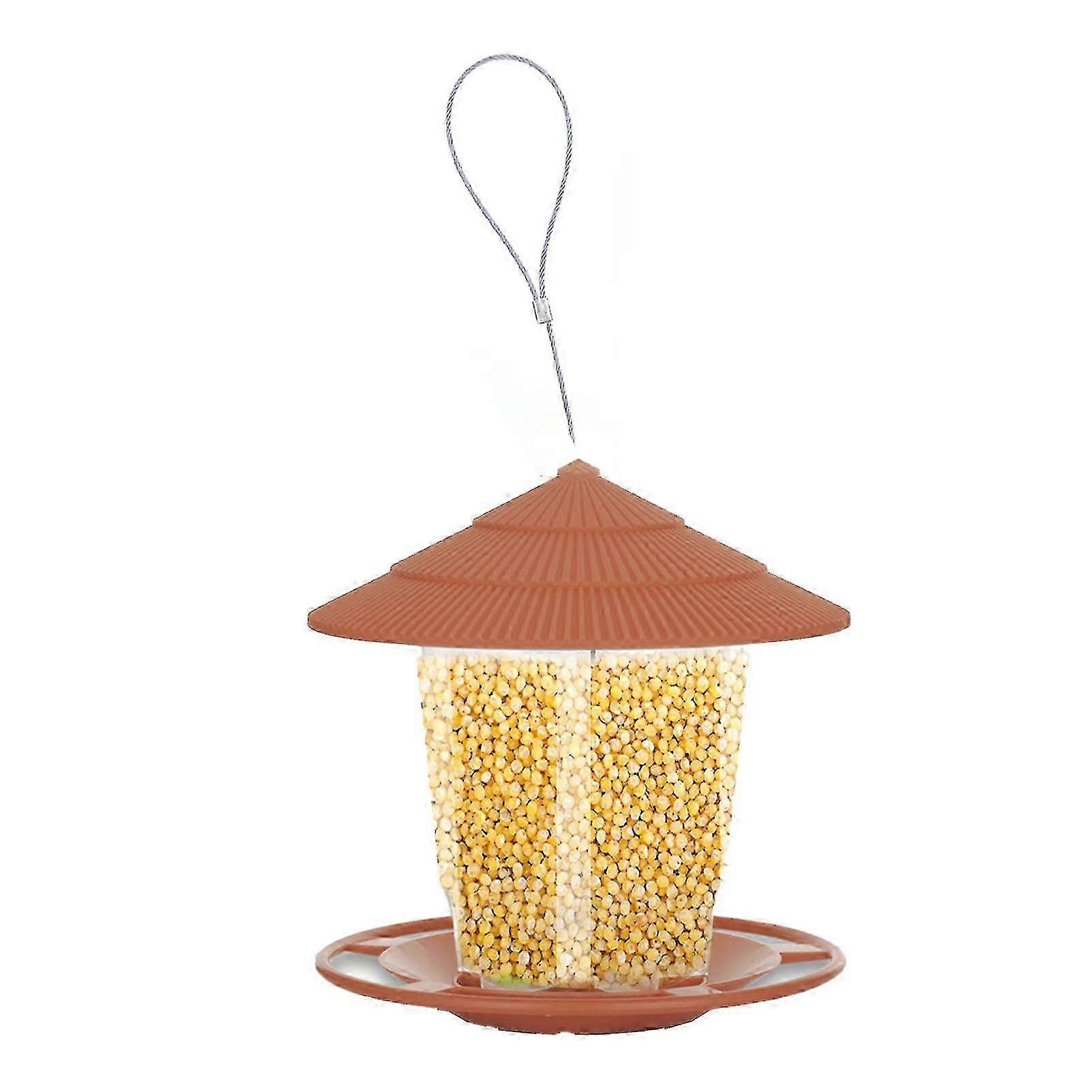Outdoor Hanging Bird Feeder Automatic Bird Feeder with Sturdy Wire and Roof for Garden Backyard Terrace Brown