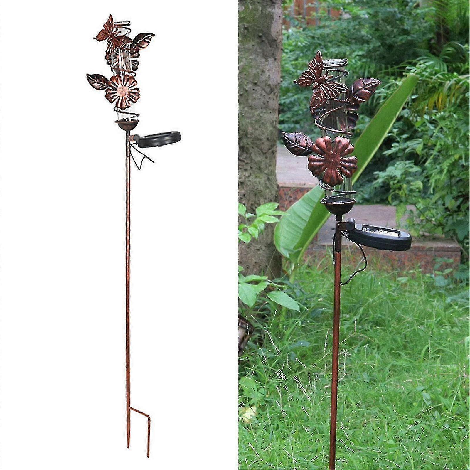 Outdoor Rain Gauge for 2024 - Wrought Iron Dragonfly Butterfly Garden Decor with Light Control