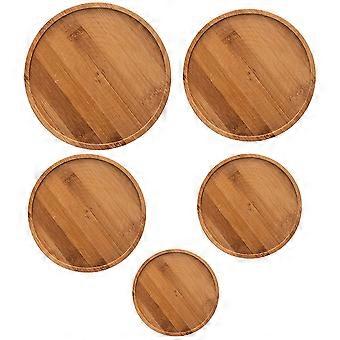 Bamboo Flowerpot Tray for Gardening 5Pcs Creative Brown Plant Pot Stand Trays