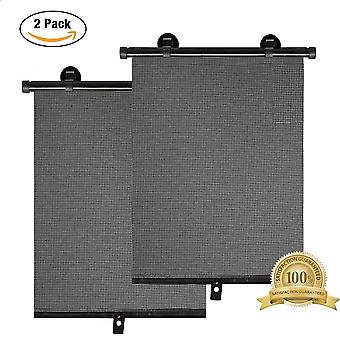 Universal Car Side Window Sunshade Protector Auto Shade Roller Retractable Rear Window Sunshade with Suction Cups One order has 2 pieces of curtains. Size: 47.5*40cm. 17.8*15.8 inch Maximum UV protection. Made of premium safe mesh for improved visibility, it also blocks 98% of harmful sun rays and heat to keep your car cooler. Definitely the best windshield sunshade for your baby, pets even car seats One-touch retract button for easy Roll-up.Designed with a retractable button. Just press the one-push button, the auto windows sun visors will wrap quickly, completely user-friendly. Double fixing roller for better fit. Choose adjustable clips or suction cups for more flexible use. Tip: It's better to clean your car window first before sticking the suction cup. You can also choose to hang it on the window with the All-inclusive Compatibility hook. This roller sunshade for cars has a unique configuration that makes it very suitable for most car side windows. Its unique outline design makes it perfect for most vehicles including: Cars, SUVs and Min Vans. It can be used effectively on most window sizes and still provide full protection. Safe and durable. The unique tight-fitting design with a lightweight reinforced wire frame allows for easy repositioning, making them easy to apply to the window. Light shades can be changed as needed and removed for storage for reuse. What a smart shade. We all love a beautiful sunny day. But when you're in the car, the sun's harsh glare can bring out the fussiness in even the calmest baby, not to mention the damage it does to delicate skin. With more coverage than other roll-on shades, Smart Shade blocks 97 percent of sunlight and helps filter harmful UV rays. Your little ones will enjoy the cool, shady ride while you iexcl; macr; You'll love how the new slim design blends with the interior of your car. Ready to use and easy to install, Smart Shade attaches to the sill for maximum top-to-bottom coverage and even rolls up and down with most windows. Now almost car sun visors on amazon are made of static cling material which is easy to fall off the window. Compared to them, our car sun visors have two mounting methods. You can use the suction cup to stick to the window. There are 3 suction cups to mount the shade. You can also choose to hang it on the window with a hook. By far the easiest to use car sun visor on the market! Specification: 1. Material: Metal and high quality plastic 2. Color: black Package includes: 2 x car blinds 6 x suckers Note 1. Before sticking the suction cup, you'd better clean your car window first. 2. The suction cup may be deformed due to long transportation, you can soak them in hot water and dry the suction cup before applying to the window. 3. Car sun visors designed to provide users with UV protection as well as safe visibility could not cover the entire side window.