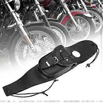 Universal Motorcycle Black PU Leather Fuel Tank Chap Cover Panel with Pouch Bag