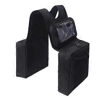 Features: 1.Size fits most ATV's, Motorcycles and Snowmobiles. 2._x000D_ Zippered compartments of these durable saddlebags keep your gear close at hand. There is a detachable,visual and touchscreen mobile phone bag, removable with hook and loop fastener. 3._x000D_ Insulated exterior pocket for storage and beverages or water bottle, holds 1 liter water bottle.Another side is a mesh pocket inside for wallets and keys. 4._x000D_ Made of 600D oxford fabric materials, weatherproof and durable, protect your bag from rain. 5._x000D_ Self-adhesive hook and loop fasteners are included to optionally secure to the sides of the gas tank. Specification: Product name: Hanging ATV bag (including mobile phone case)_x000D_ Size: 26.5x8.07 inch_x000D_ Fabric: 600D Oxford cloth + 210D Oxford cloth_x000D_ Colour: Black _x000D_ Net weight: 0.35 kg_x000D_ Single package size: 25.5x23.5x3cm_x000D_ Packaging: pp bag