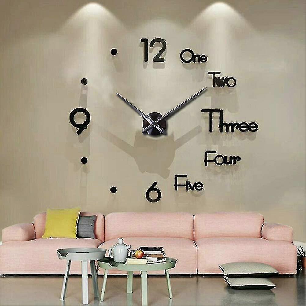 Wall Sticker Clock Diy Simple Silent Clock Black (50x50cm)
