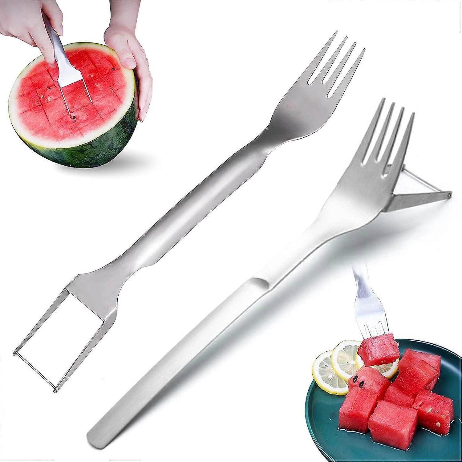 Watermelon Fork Stainless Steel Melon Cutter, Double Headed Watermelon Fork Cutter, 2 in 1 Watermelon Fork Slicer Cutter, Watermelon Fork Watermelon C