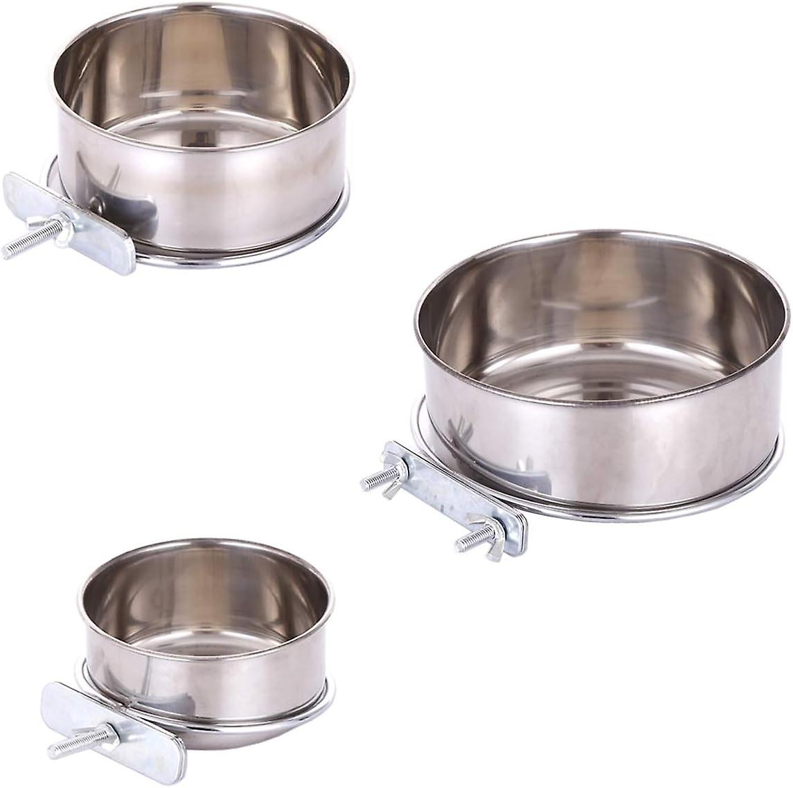 Pet Food Water Bowl with Clamp Holder Stainless Steel Feeding Cups Feeder for Dog Bird Parrot Cat Ra