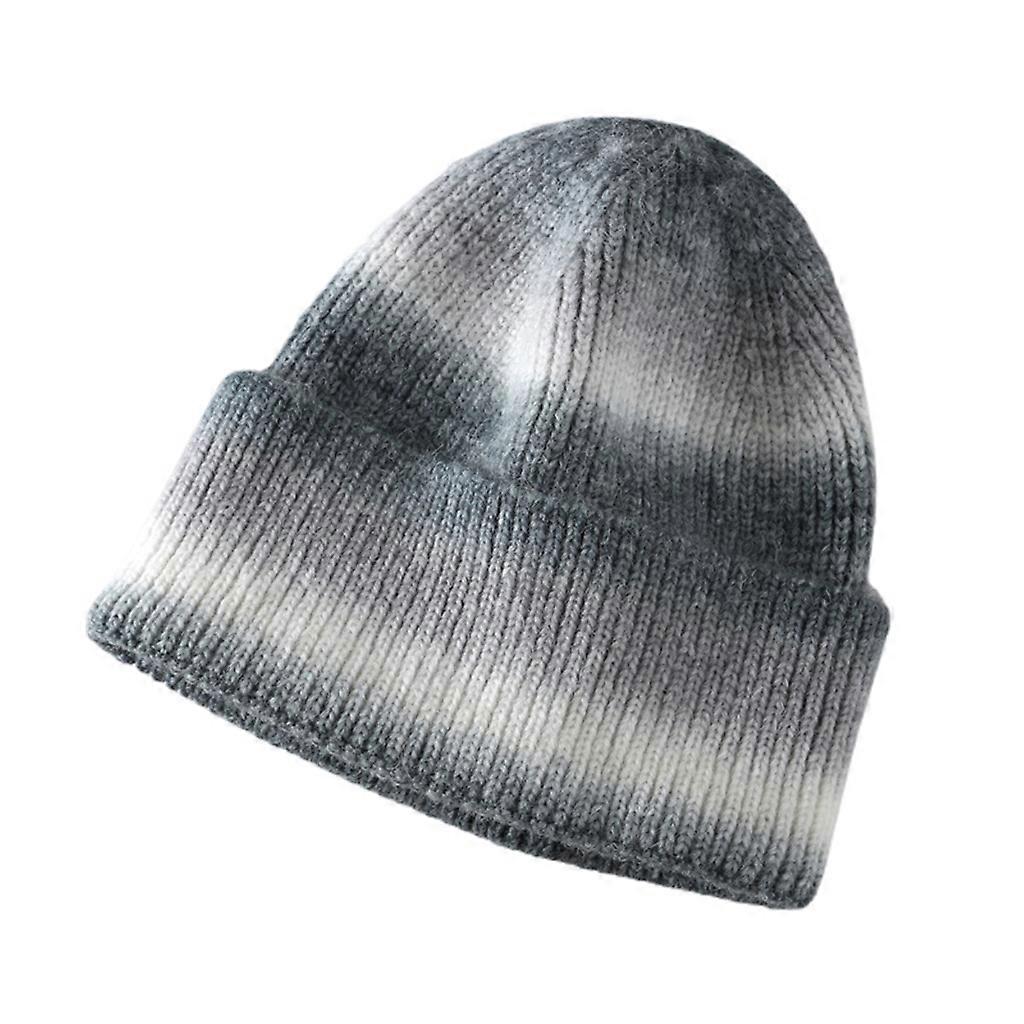 Warm Gradient Wool Hat Winter Slouchy Beanies Soft Stretch Thick Knitted Cap