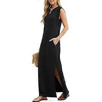VEZFAA Women's Fashion Summer Spring Solid Color Print Sleeveless O-Neck Loose Waistline Casual Dresses