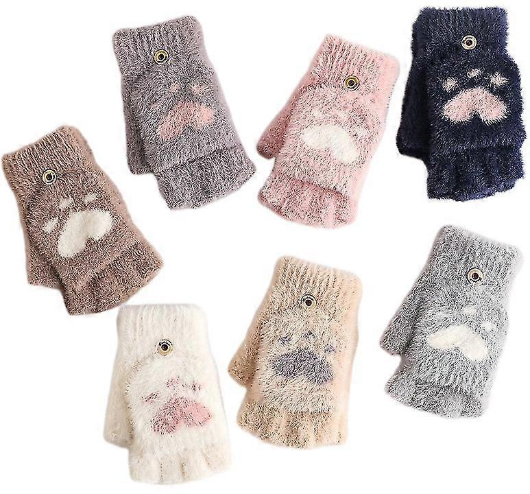 Women's Winter Gloves Warm Touchscreen Gloves Cute Cat Claw Sensory Fingerless Mitten