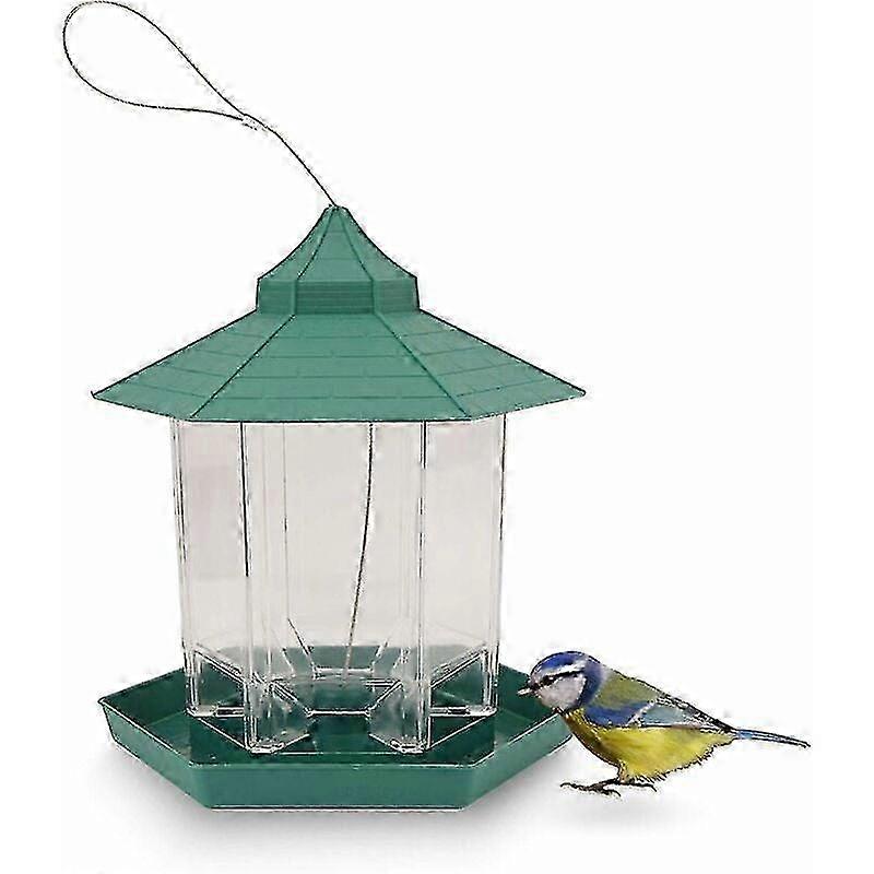 w BXSB Bird Feeder Outdoor Bird Feeder Hanging Bird Feeder Large Capacity Waterproof Hexagon Garden Hanging Wild Bird Food (Green)