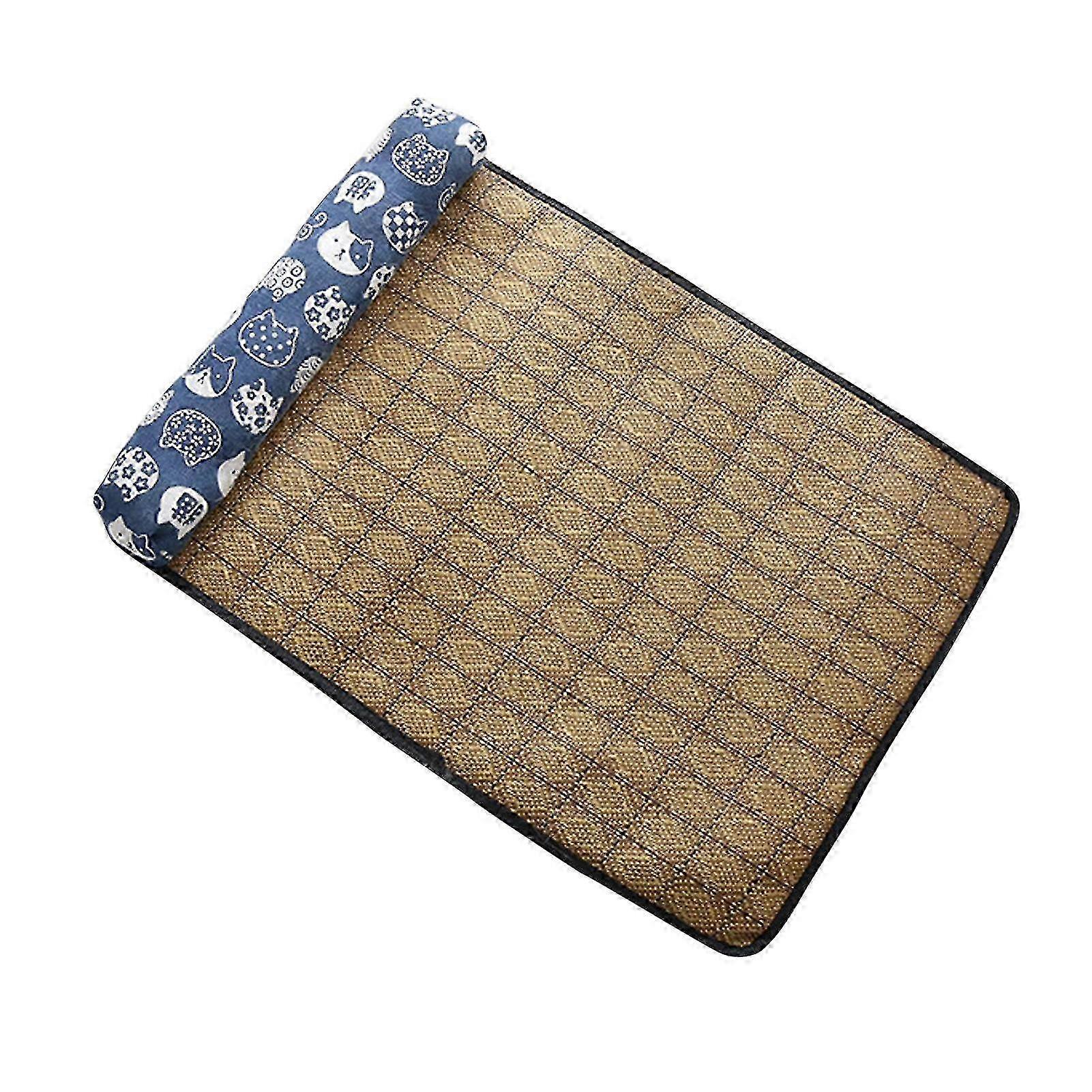 w Pet Cooling Mat Cute Cat Cartoon Pattern Fine Edging Scratch Resistant Cat Sleeping Mat with Pillow 55 X 40 Dark Blue