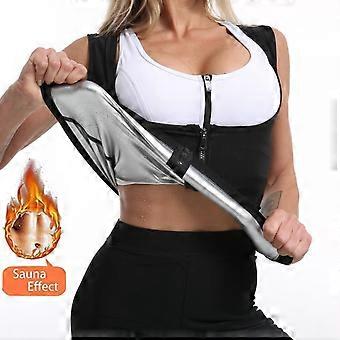 Kvinder Sauna Sweat Vest Taljetræner Workout Tank Sauna Suit Kompression Shirts Fitness Lynlås Top