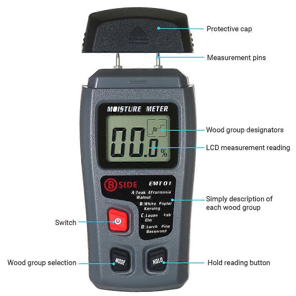 Wood Humidity Meter Portable Handheld Hygrometer with LCD Display 4 Modes Pin Type Timber Moisture Detector Water Leak Sensor